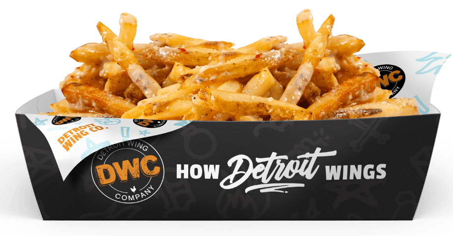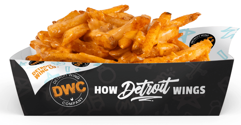 Hand-battered crispy chicken, honey BBQ sauce, tortilla strips, romaine, red onions, and smothered in our DWC cheese sauce.