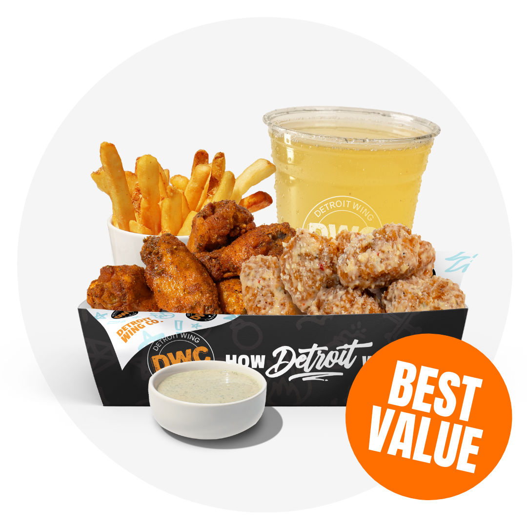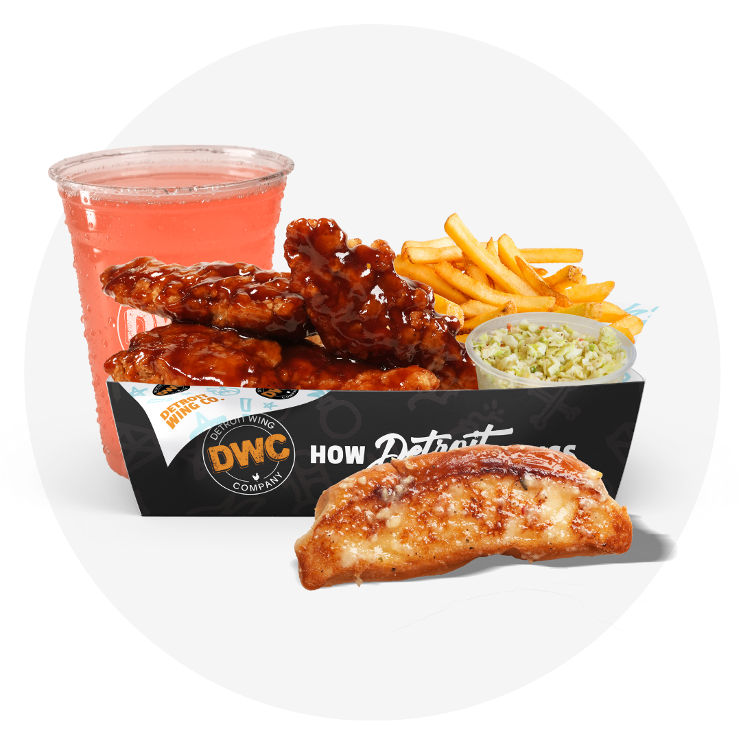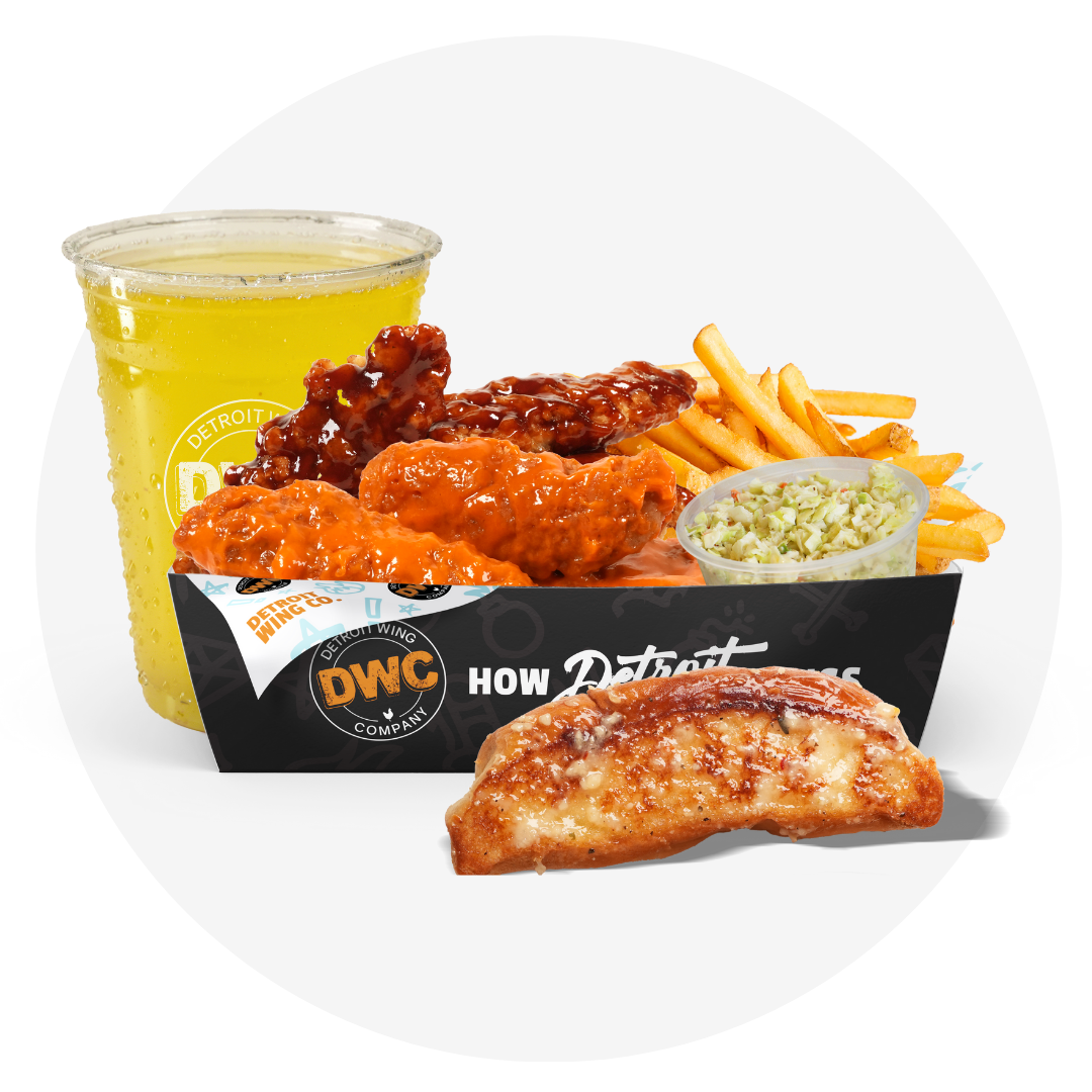 Choice of baked or crispy chicken and sauce, romaine, cheddar, tomato, onion. Served with Ranch Dressing.